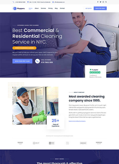 Niche WordPress theme for cleaning business.