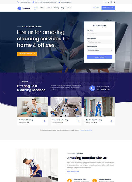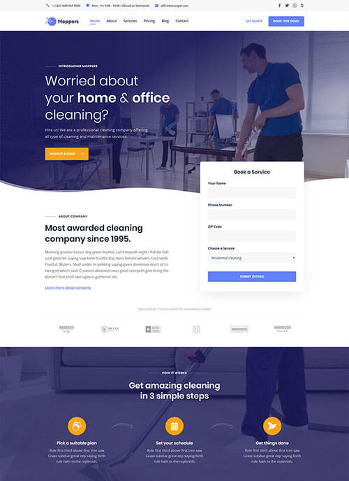 A beautiful niche WordPress theme, specially designed for businesses related to the Cleaning Industry.